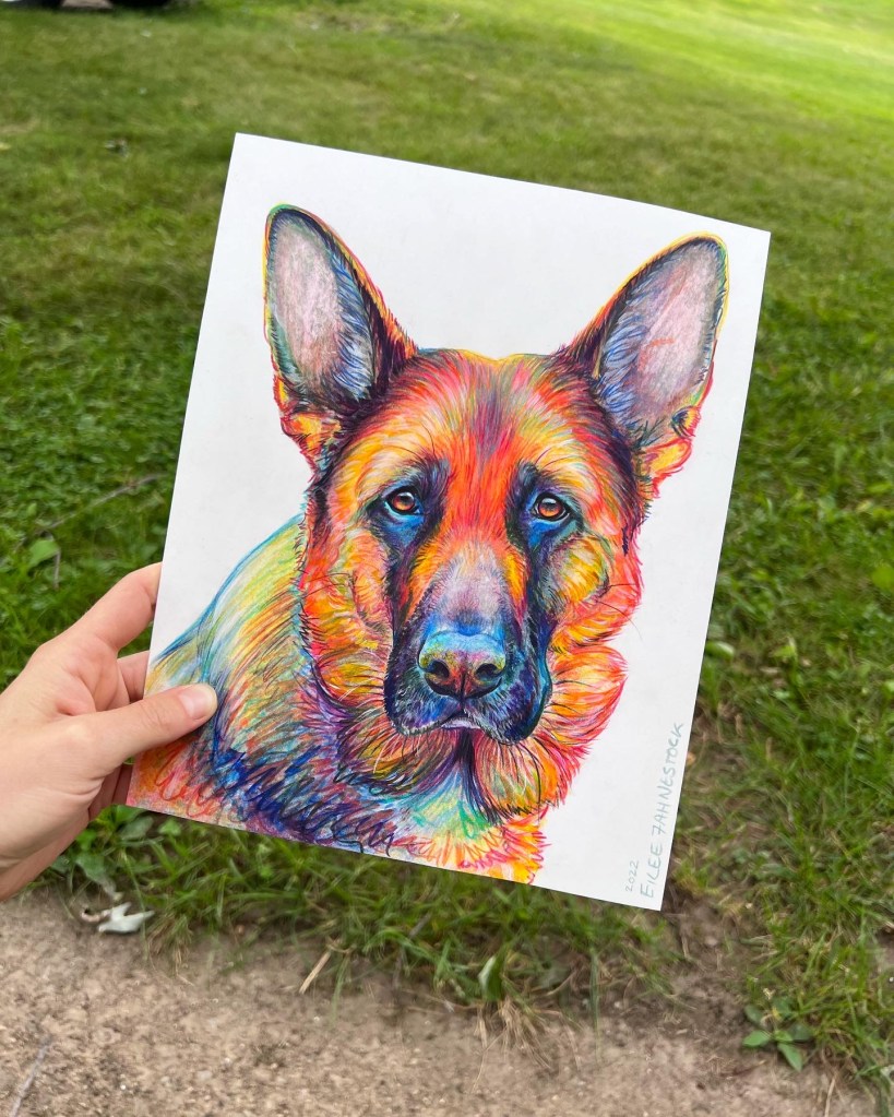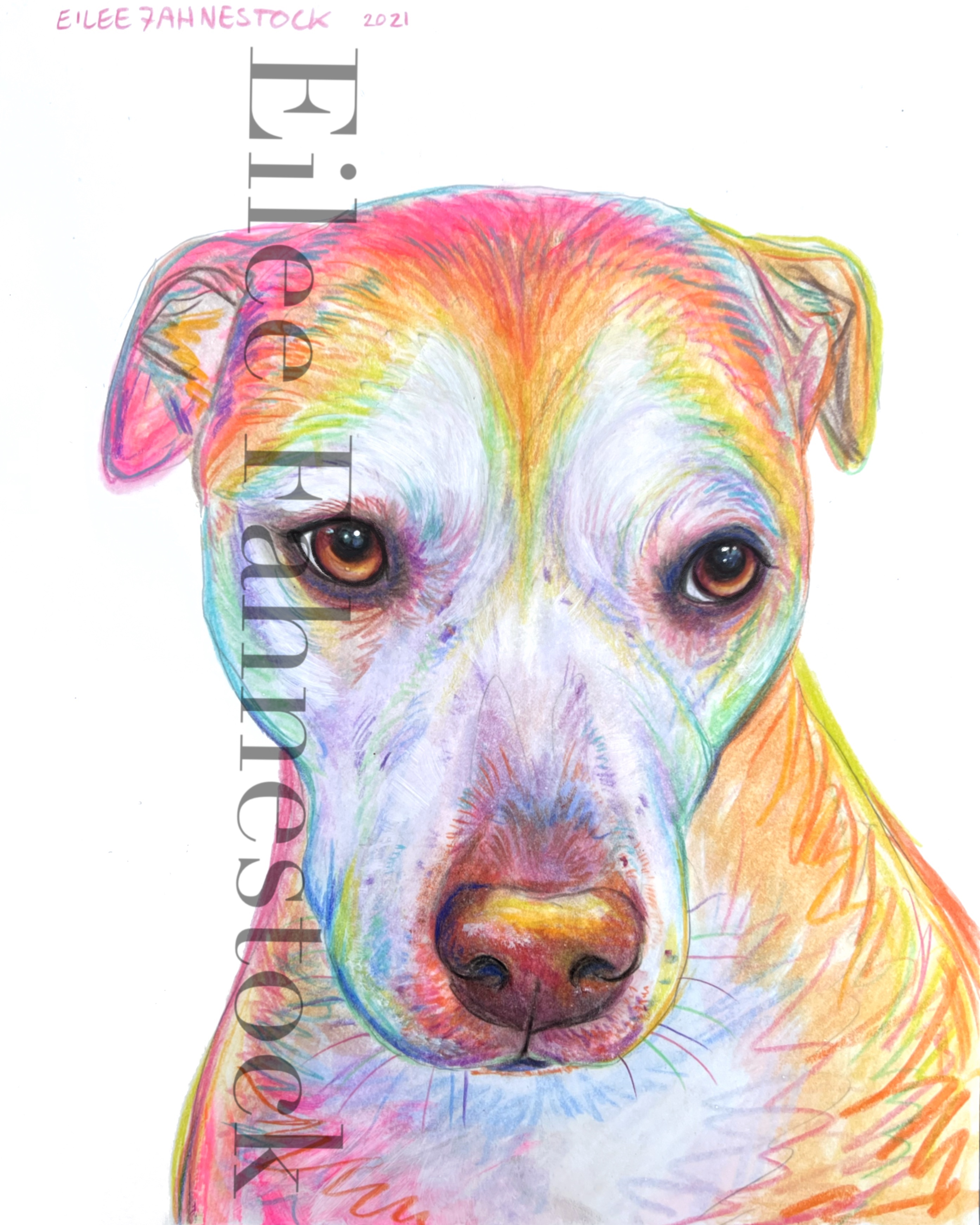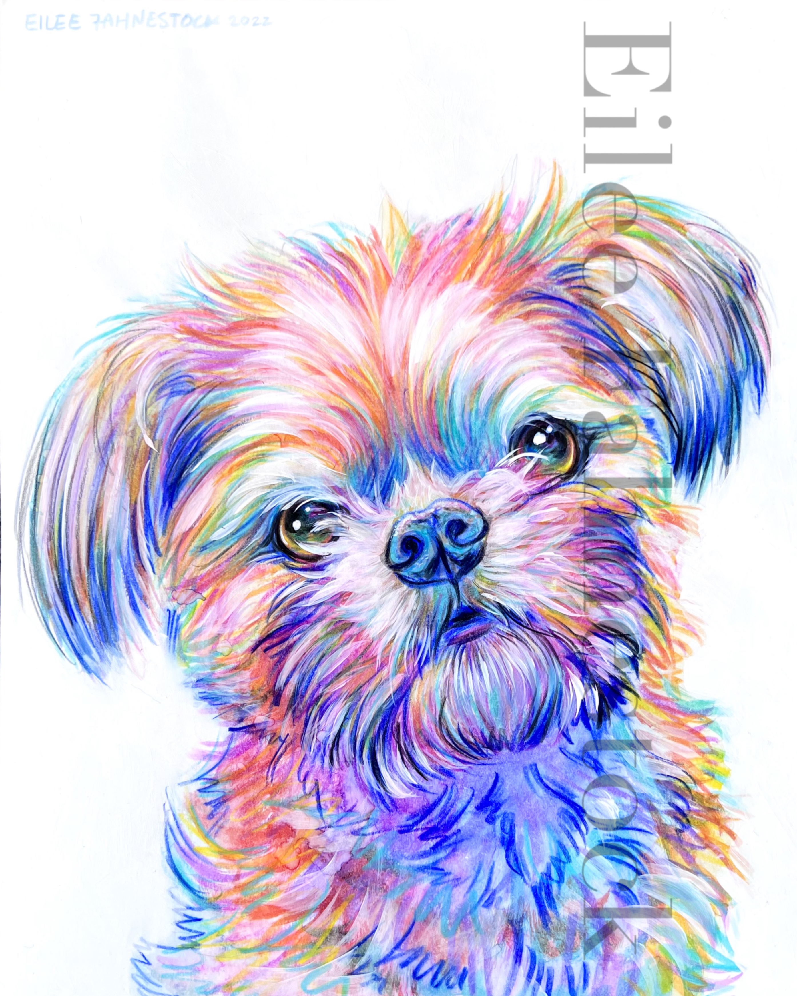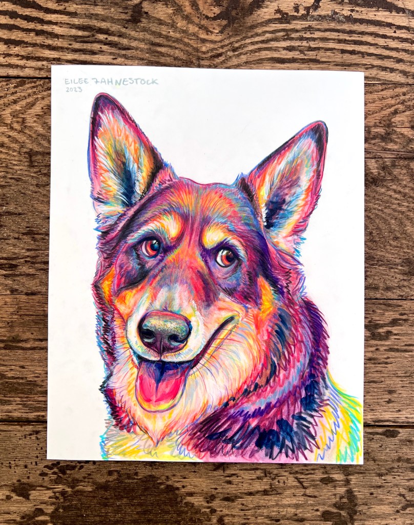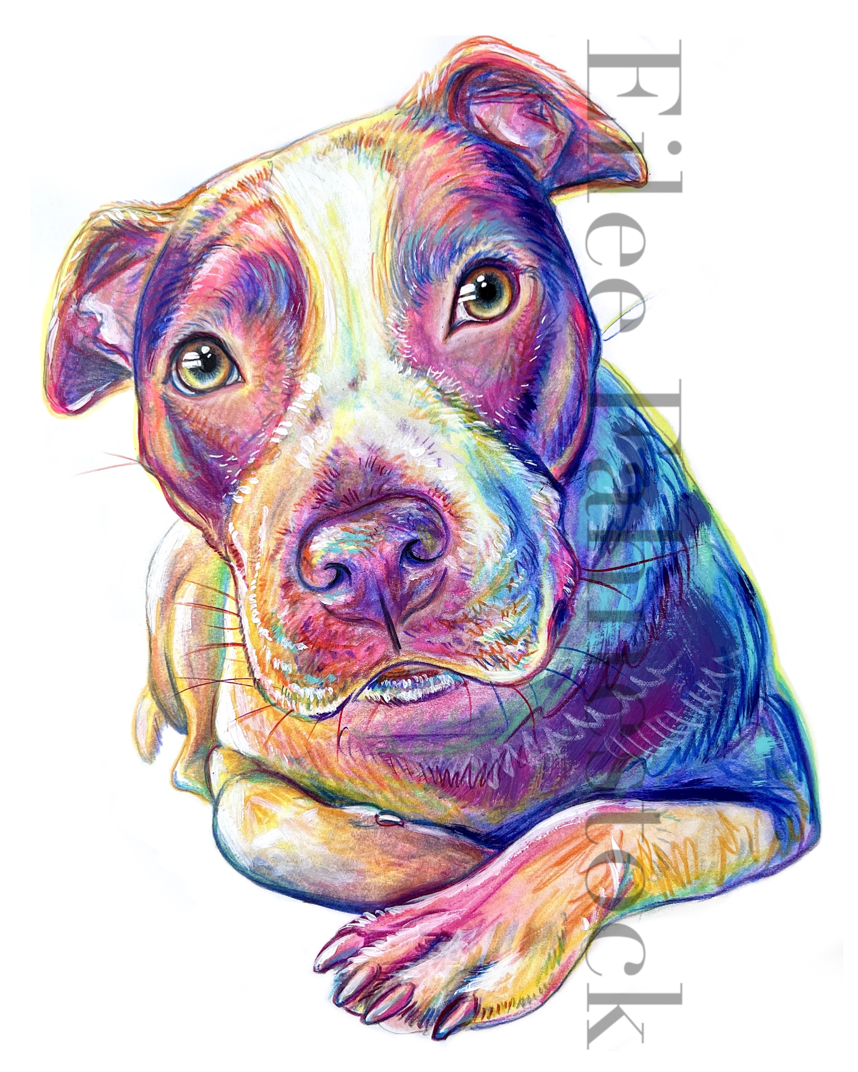Pet Portraits-Mixed Media on Paper Colored Pencil and acrylic paint on paper- various sizes. White background. 4×4 inches: Click an image to view full size. 5×7 inches: 8×10 inches: 11×14 inches: