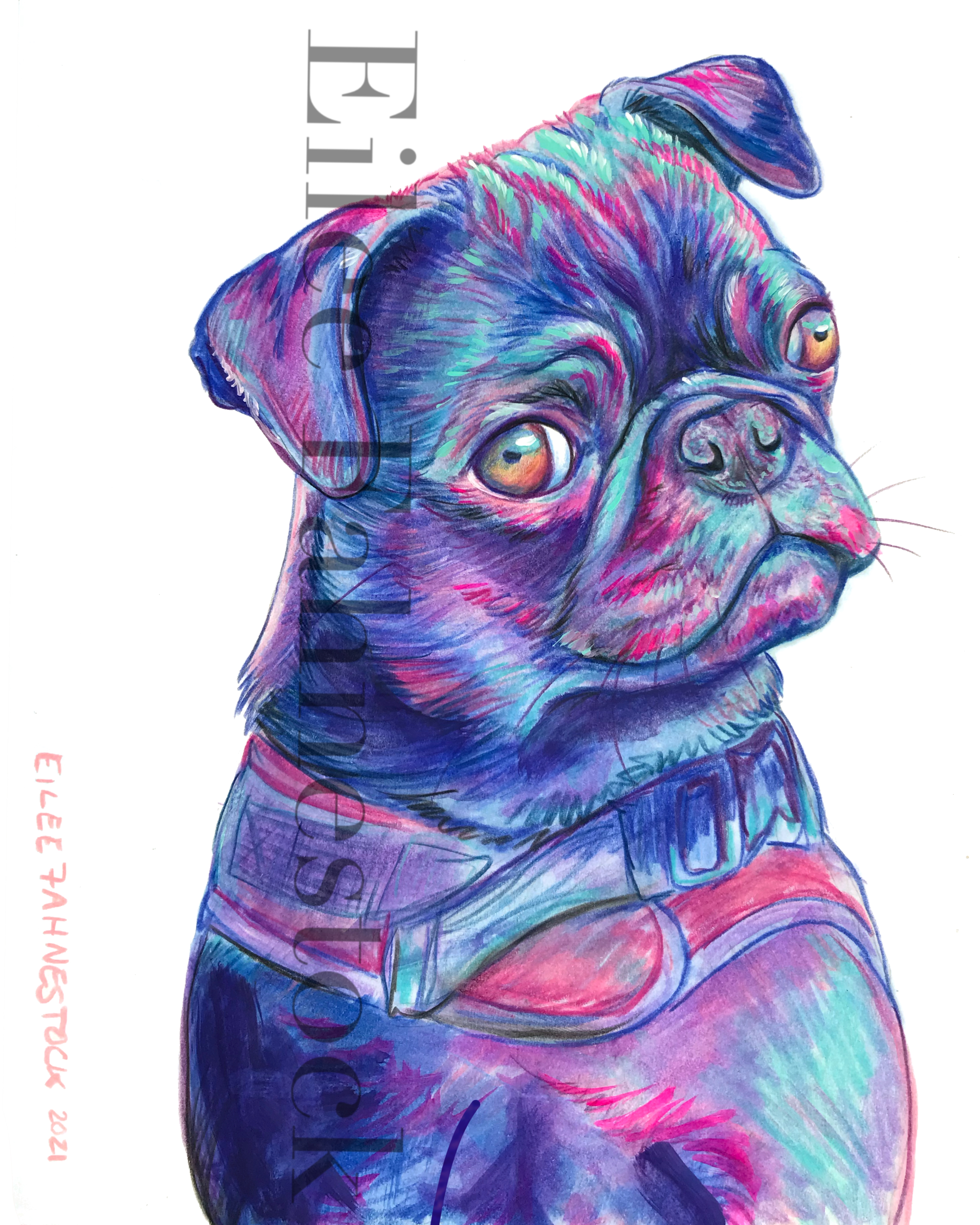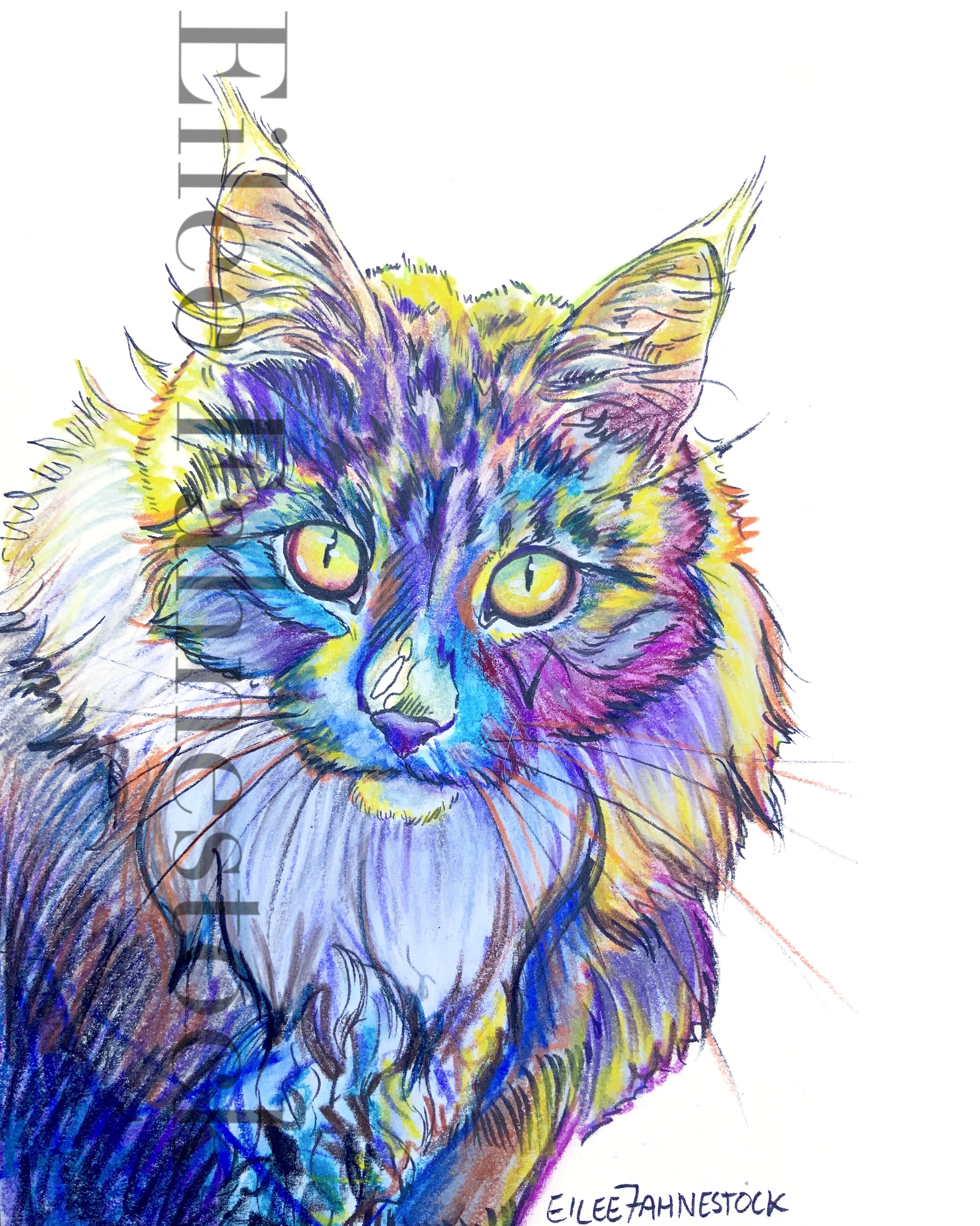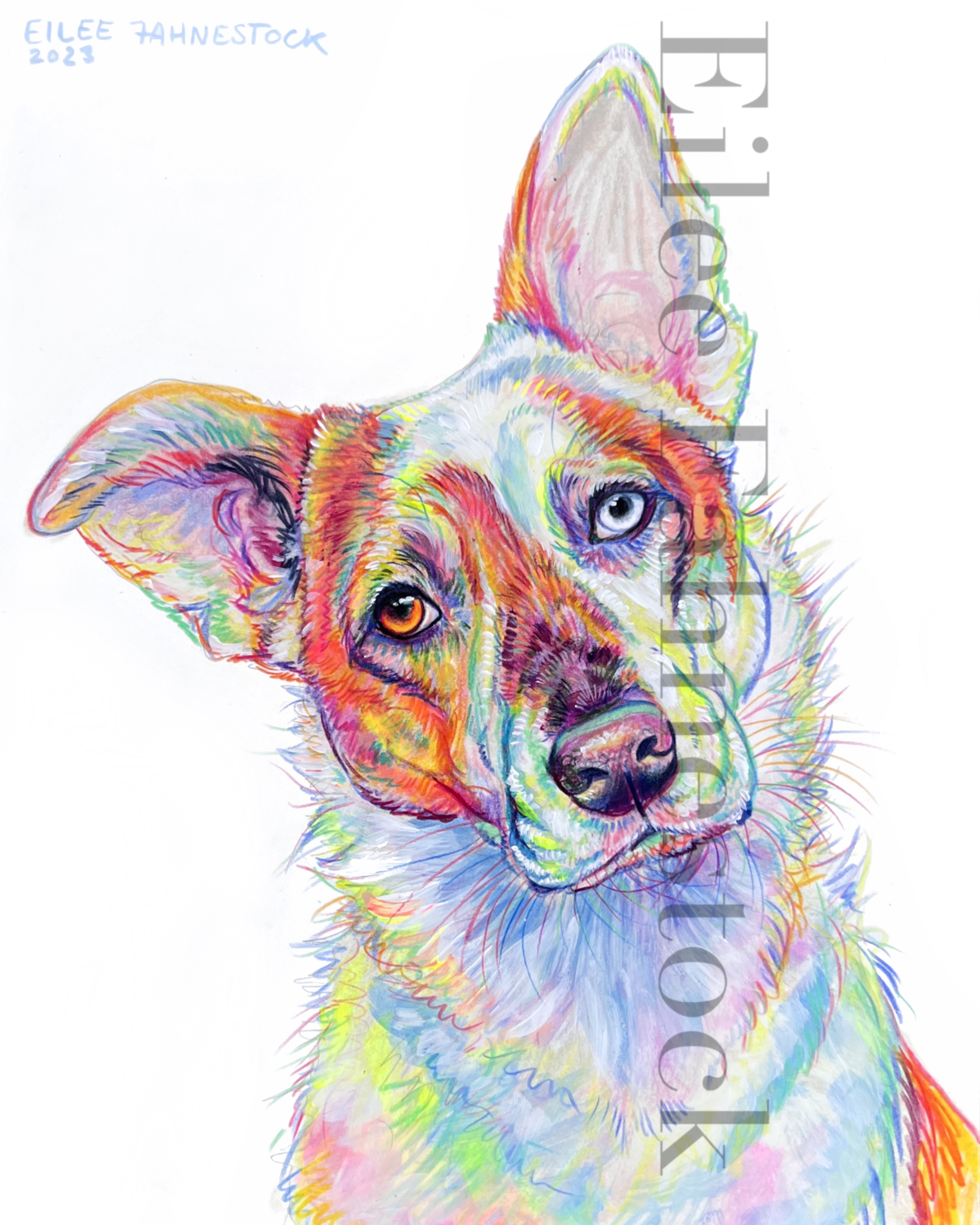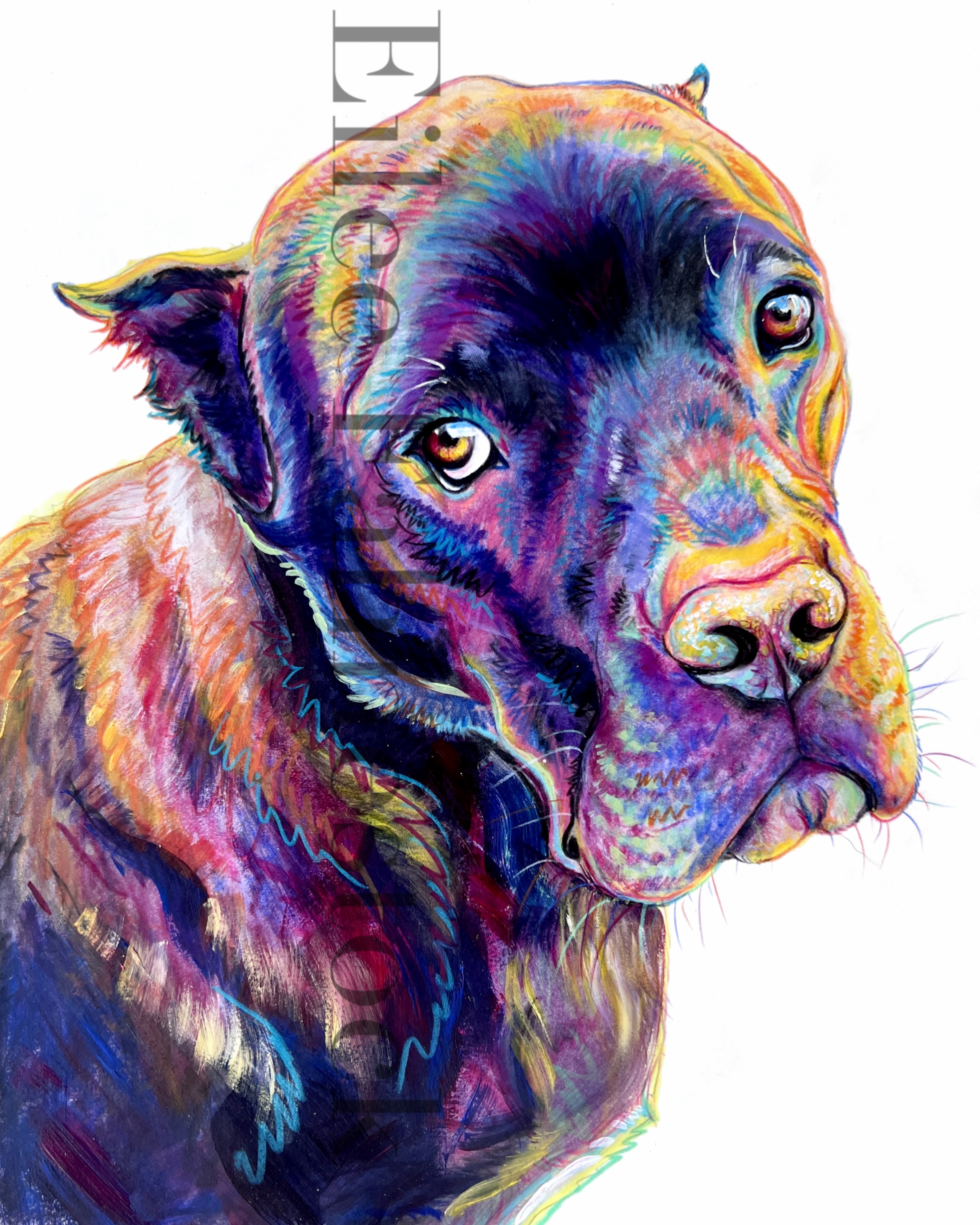 Pet Portraits-Mixed Media on Paper Colored Pencil and acrylic paint on paper- various sizes. White background. 4×4 inches: Click an image to view full size. 5×7 inches: 8×10 inches: 11×14 inches: