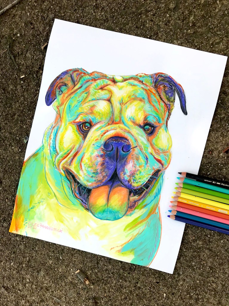 As vibrant, colorful, and unique as your pet! Custom mixed media drawing on archival paper ready to frame.